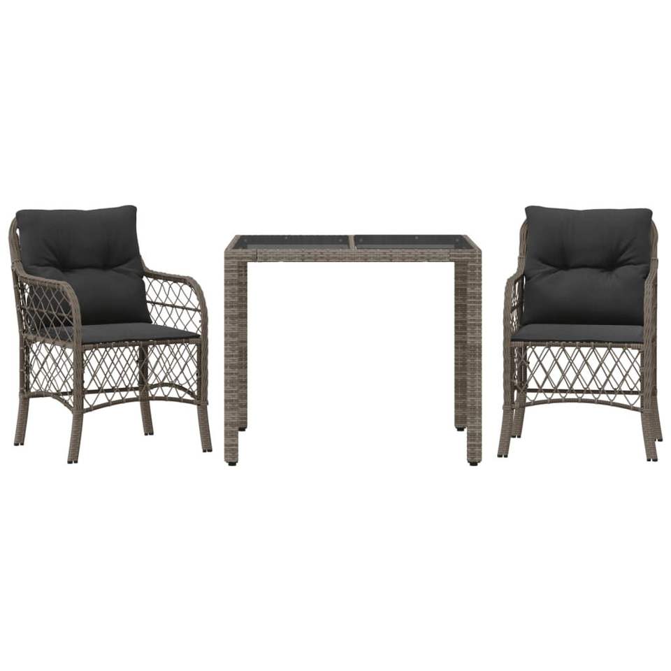 Conjunto de Bistro en Ratán Sintético Gris, Acero con Recubrimiento en Polvo y Vidrio Templado para Uso en Jardín