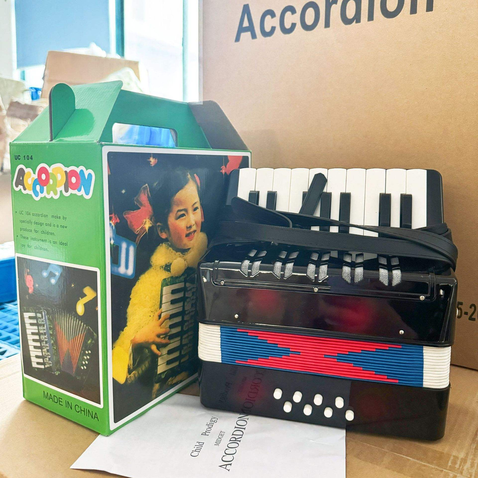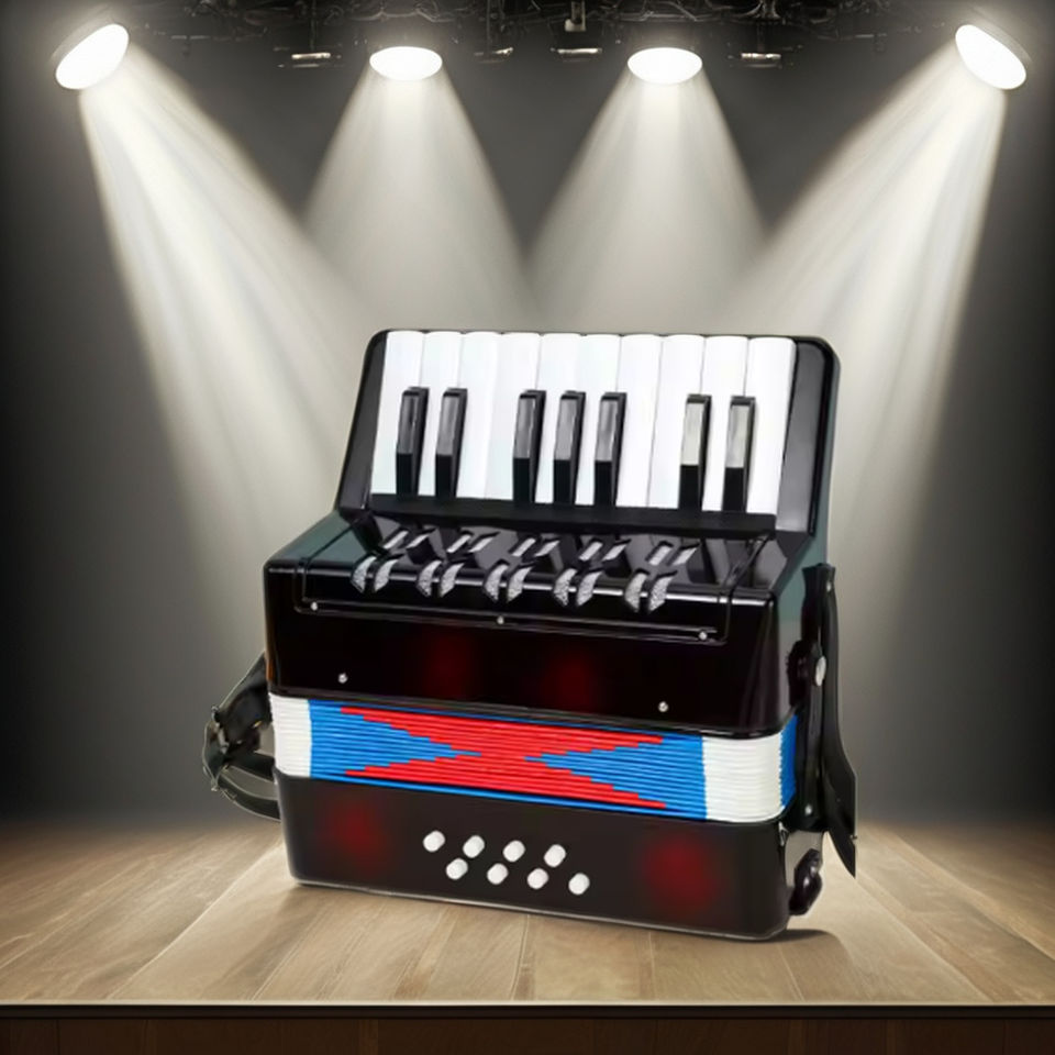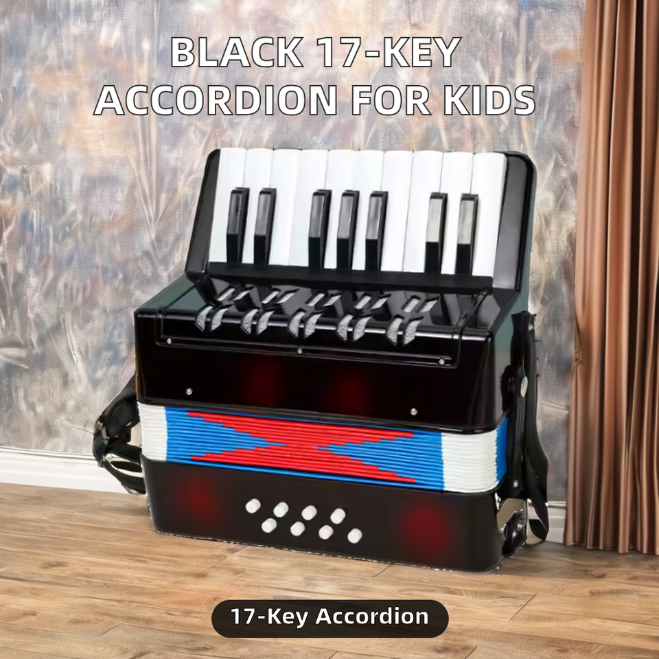 Acordeón de Botones Negro de 17 Teclas y 8 Bajos, Instrumento Musical de Madera para Niños Principiantes, Cromático Diatónico, Práctica, Regalo para Estudiantes