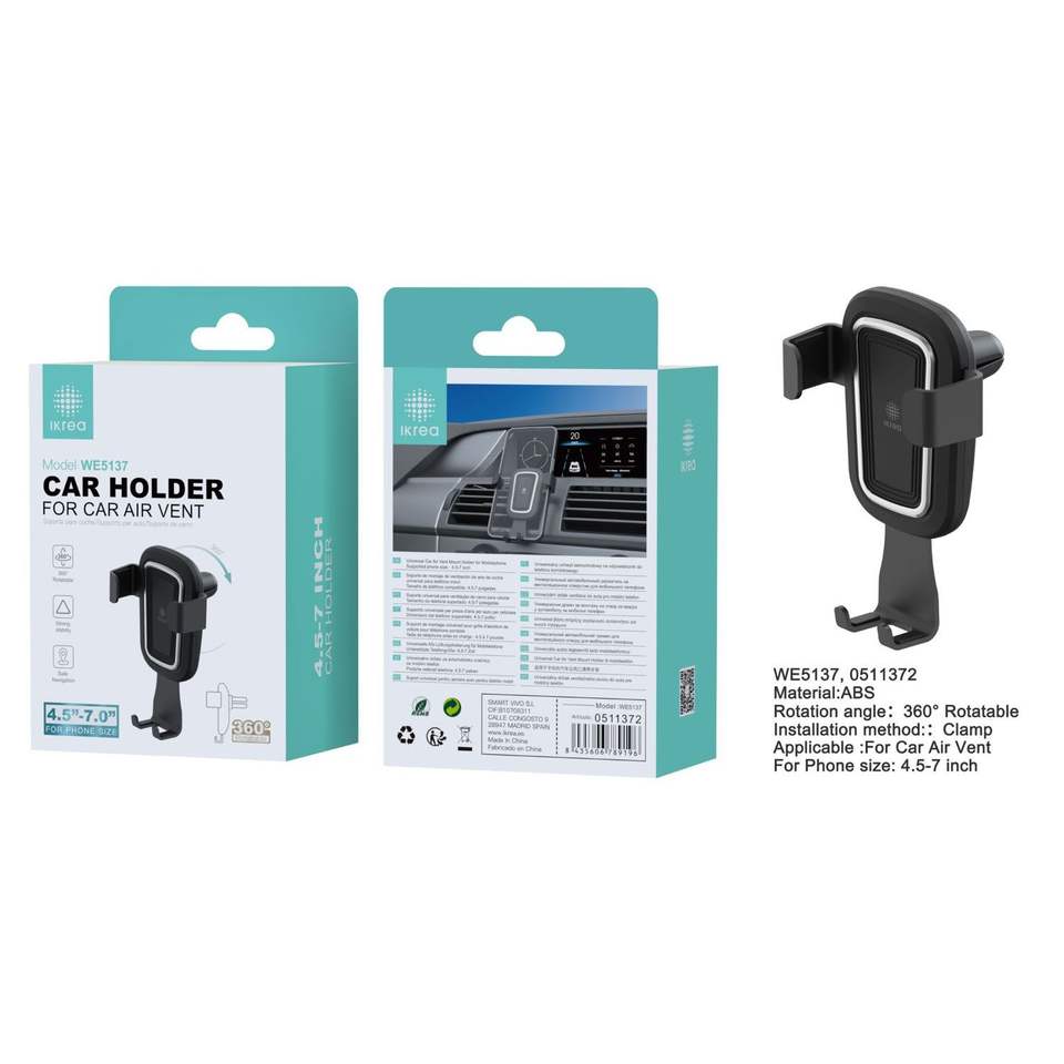 Soporte de montaje de salida de aire de coche universal de 360 ° negro con clip de teléfono accesorio de coche soporte de teléfono móvil