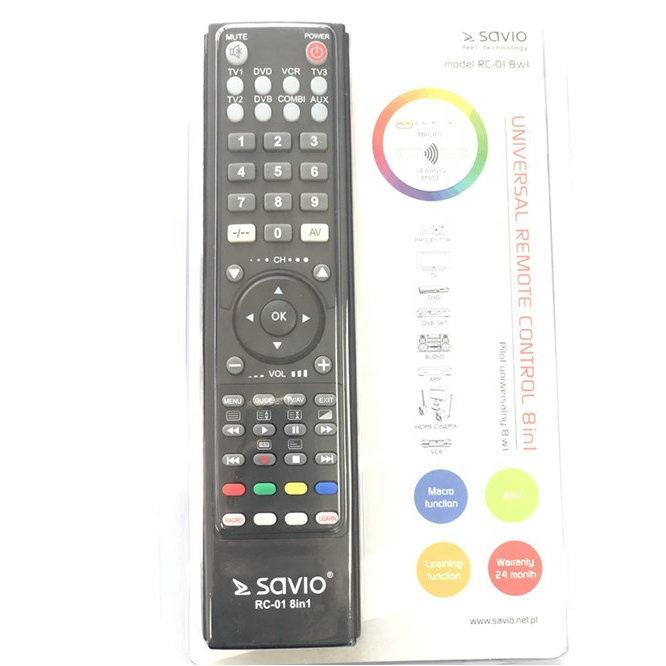 Control Remoto Universal Negro 8 en 1 para 8 Dispositivos de TV/DVB/DVD/VCR/COMBI/AUX PERSONALIZADO