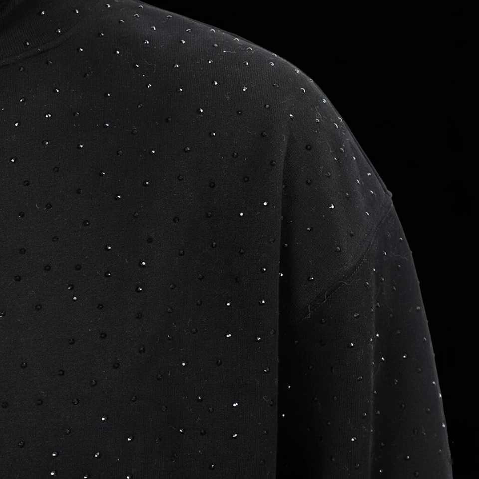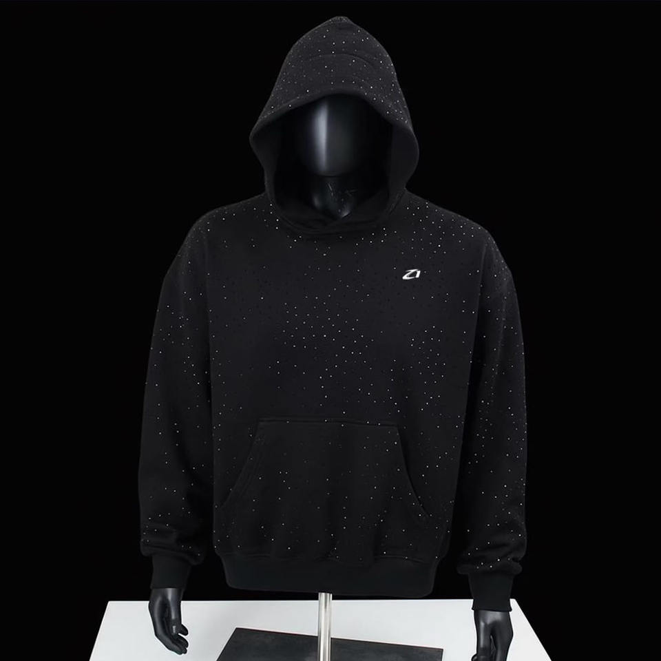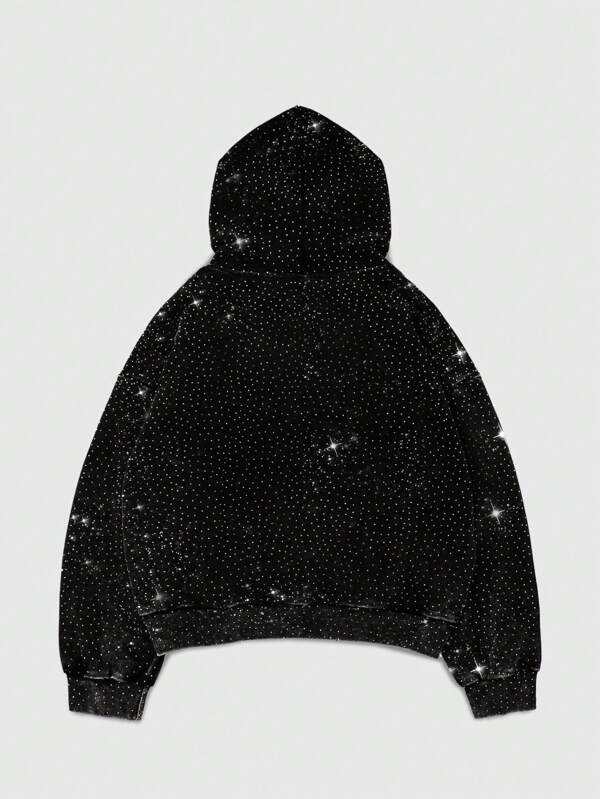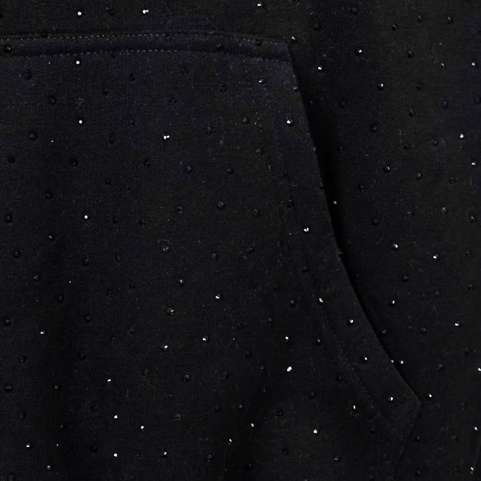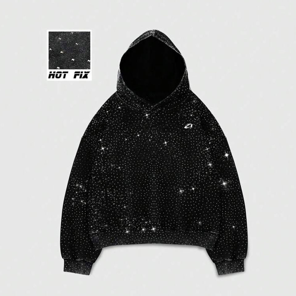 Sudaderas con Capucha de Felpa de Algodón con Pedrería Negra en Toda la Superficie para Hombre, Estilo Urbano Minimalista, Fabricación Personalizada al por Mayor