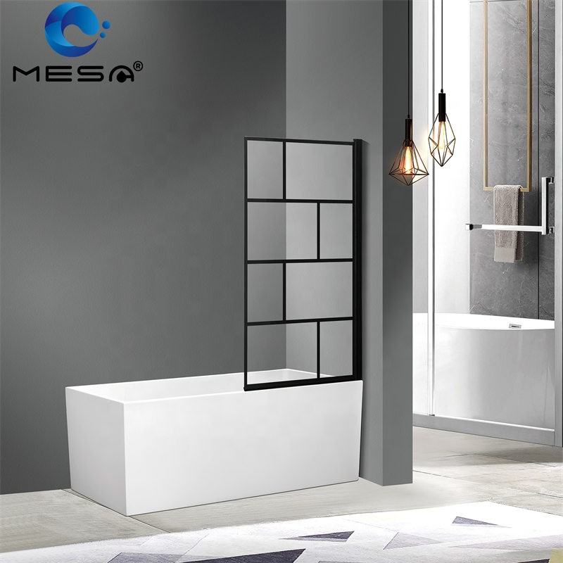 Marco de aluminio negro, cierre suave, puerta de vidrio deslizante, pantalla de ducha y bañera