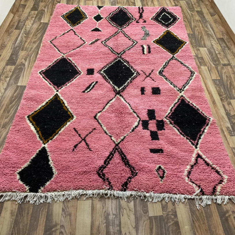 Modo:Black And Pink Diamond Beni Ourain Moroccan Berber Alfombra