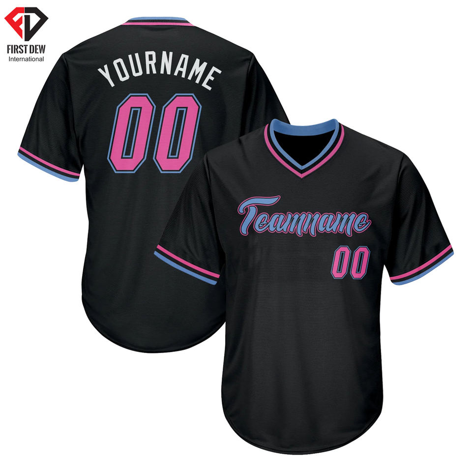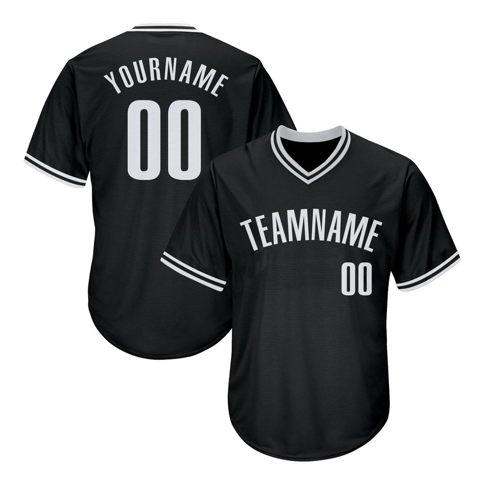 Camiseta de béisbol con cuello en V para hombre, ropa deportiva masculina con estampado de nombre de equipo en blanco y negro, precio barato, venta al por mayor