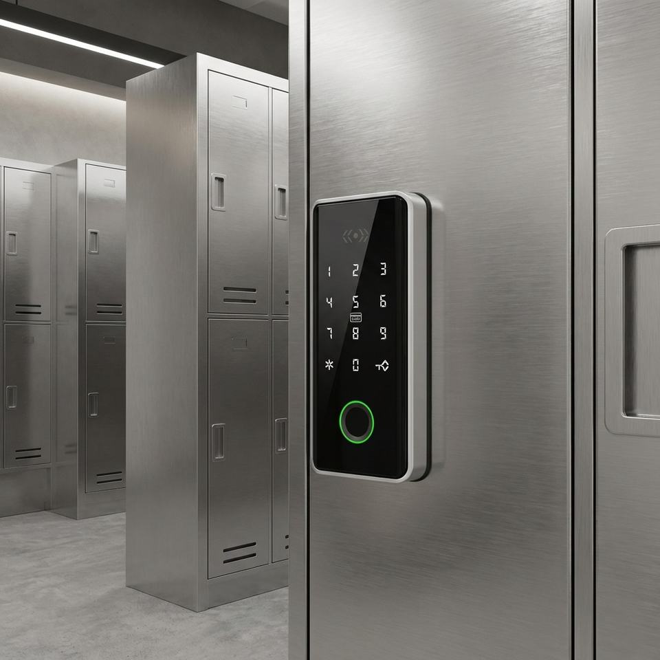 Cerradura Digital Antiespía Negra Phantom Code para Casilleros y Armarios Electrónicos en Instalaciones Industriales, Casillero Metálico