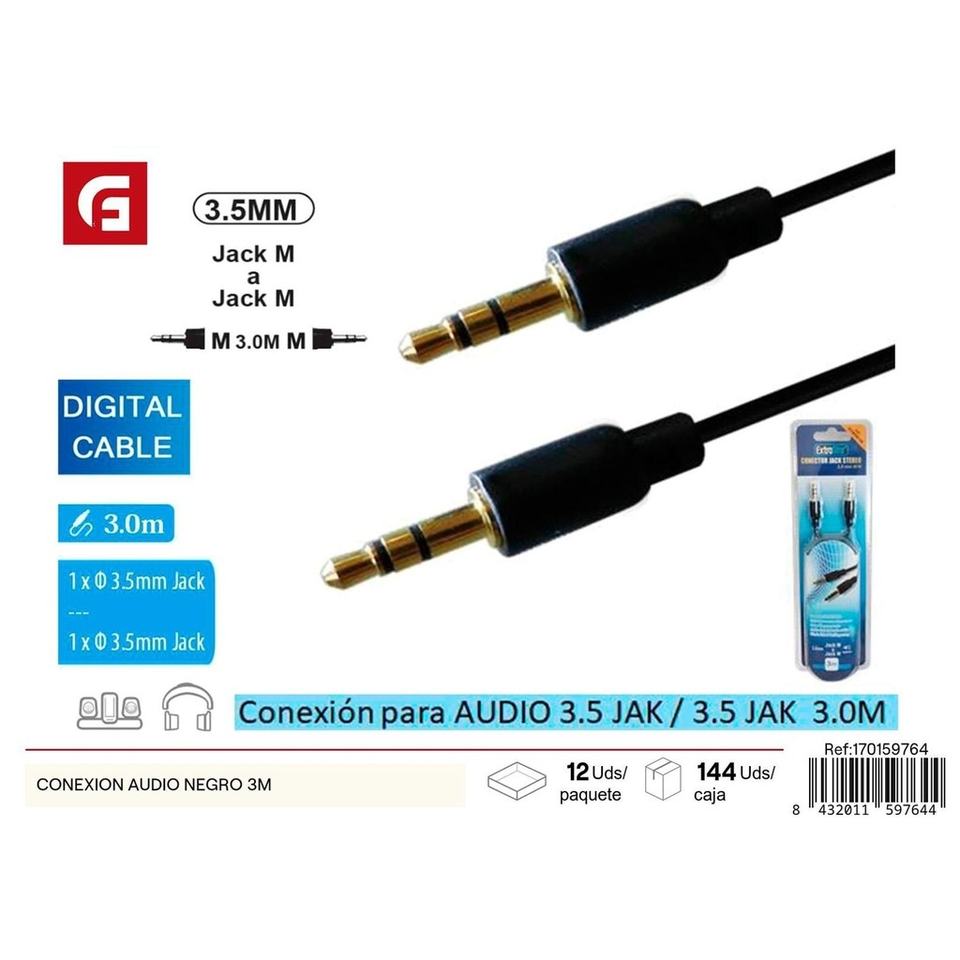 Cable de conexión de audio negro 3M-Productos electrónicos y cables de conexión