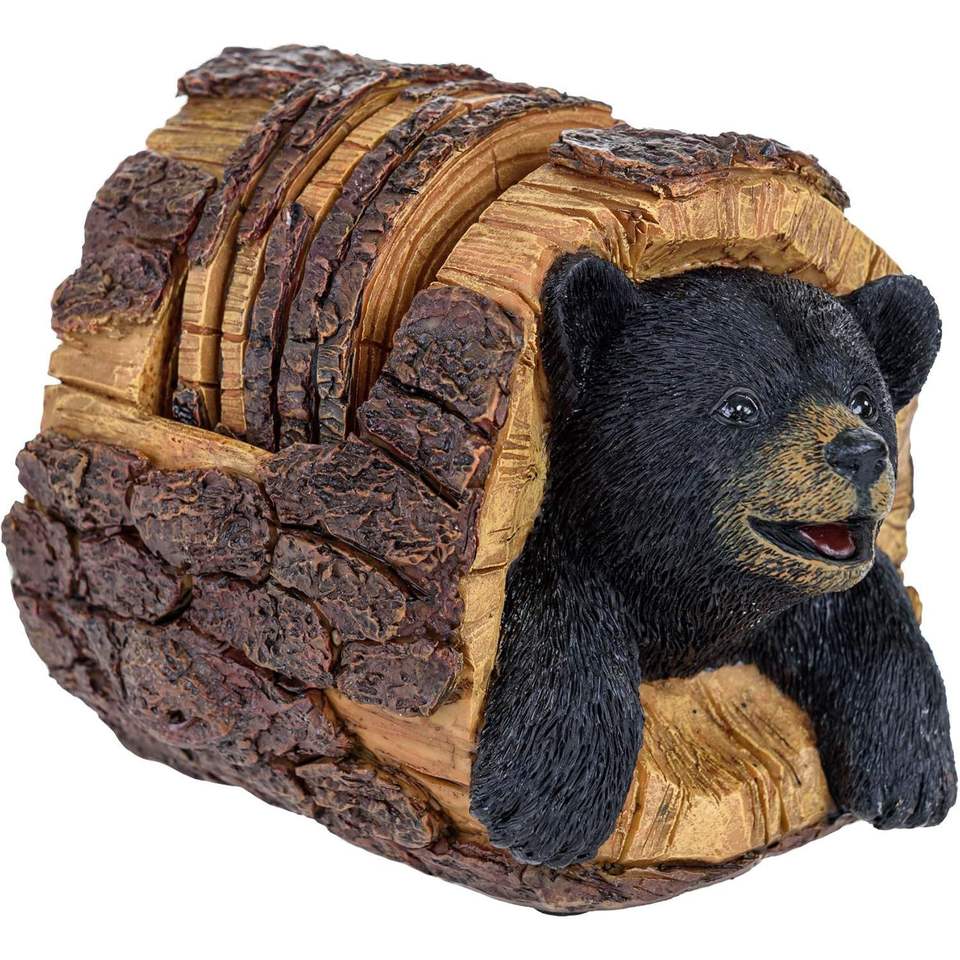 Juego de Posavasos Rústicos con Estampado de Oso Negro, Elegantes Portavasos para Decoración del Hogar y Ambiente de Cabaña