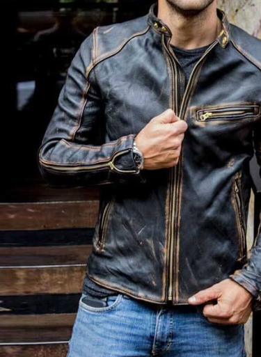 Negro Biker Vintage Motocicleta Desgastado Racer Chaqueta de cuero
