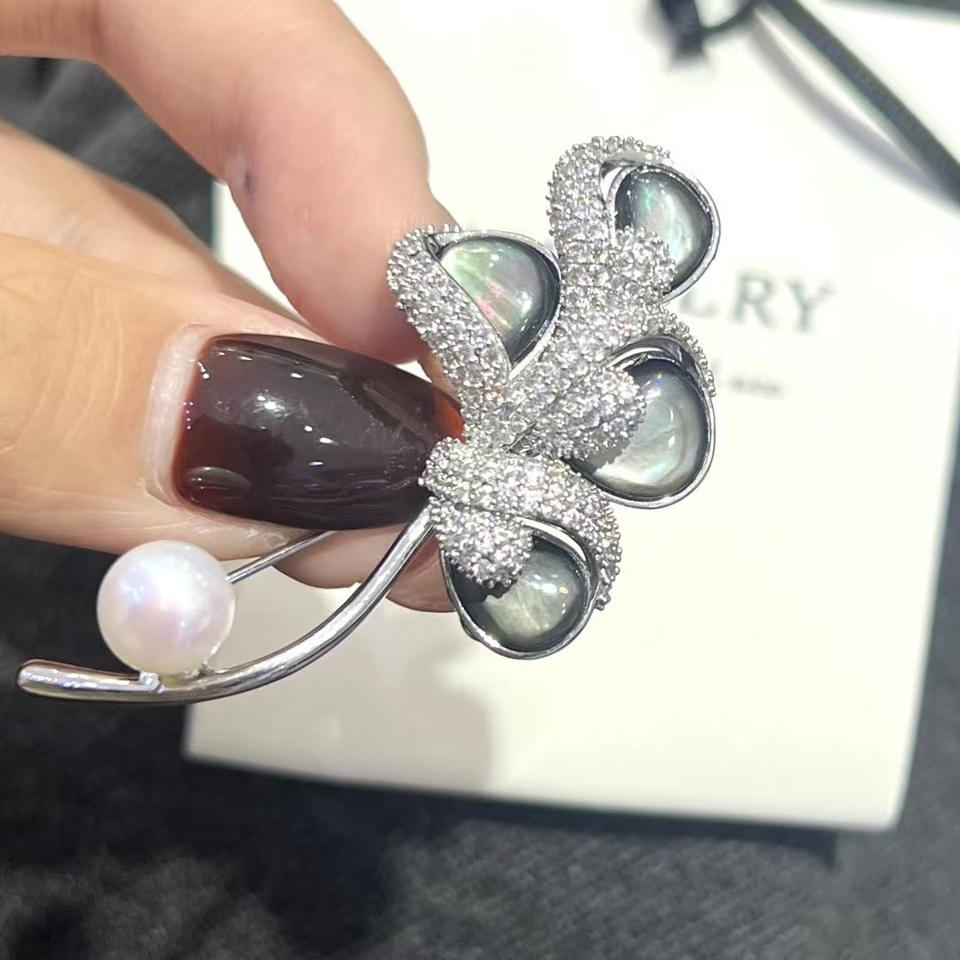 Broche importado de piedra de cristal perla