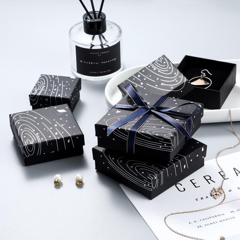 Cajas de Joyería de Cartón Negro al por Mayor, Caja de Regalo Cuadrada Pequeña de Terciopelo para Perfume, Collar, Pendientes, Almacenamiento para Artículos de Joyería Pequeños