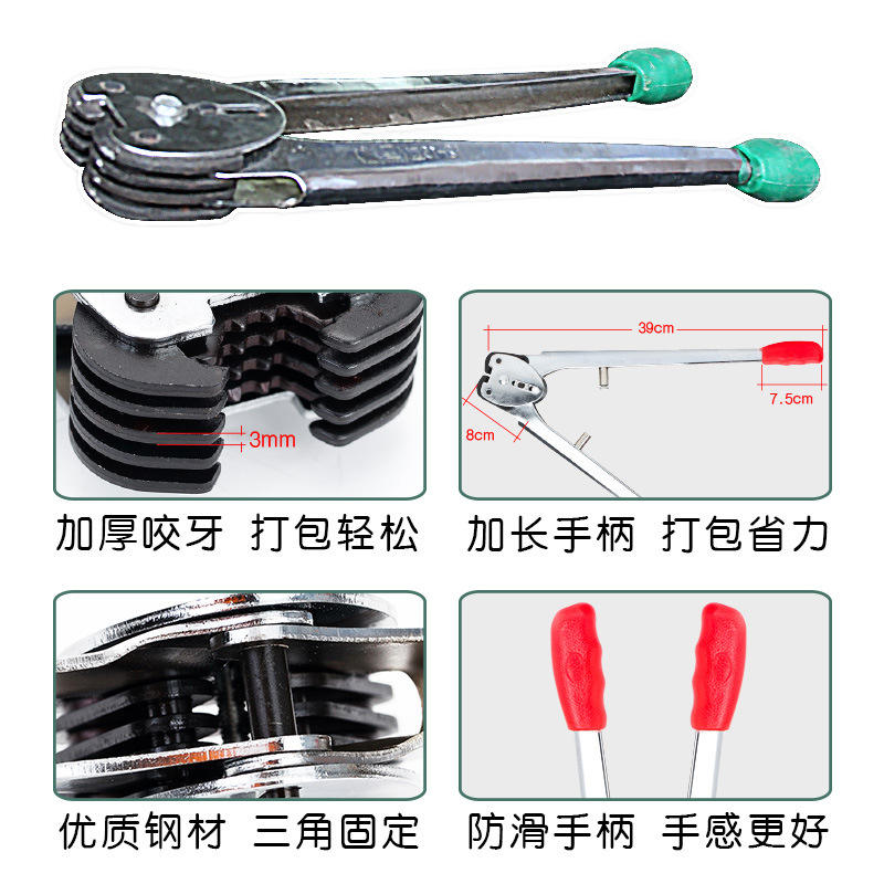 Kit de Máquina Flejadora Manual Black Cat, Herramienta de Flejado de Papel y Plástico PP de 0.5-1.5 mm para Embalaje
