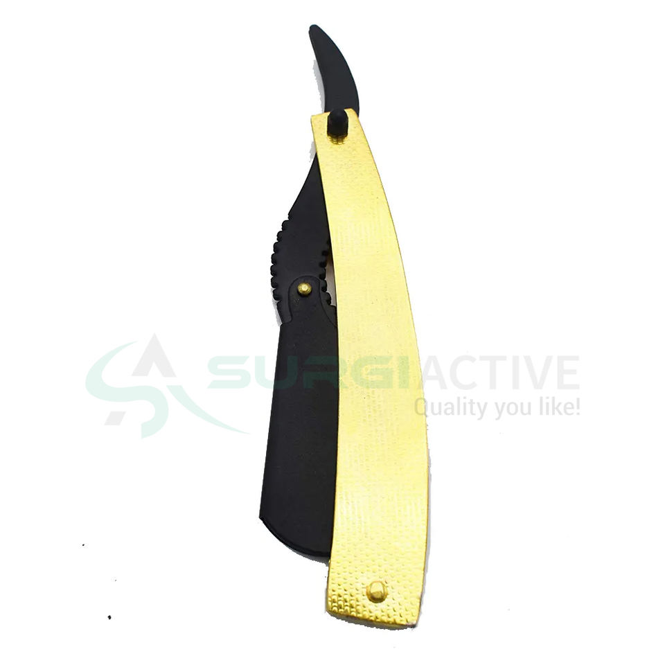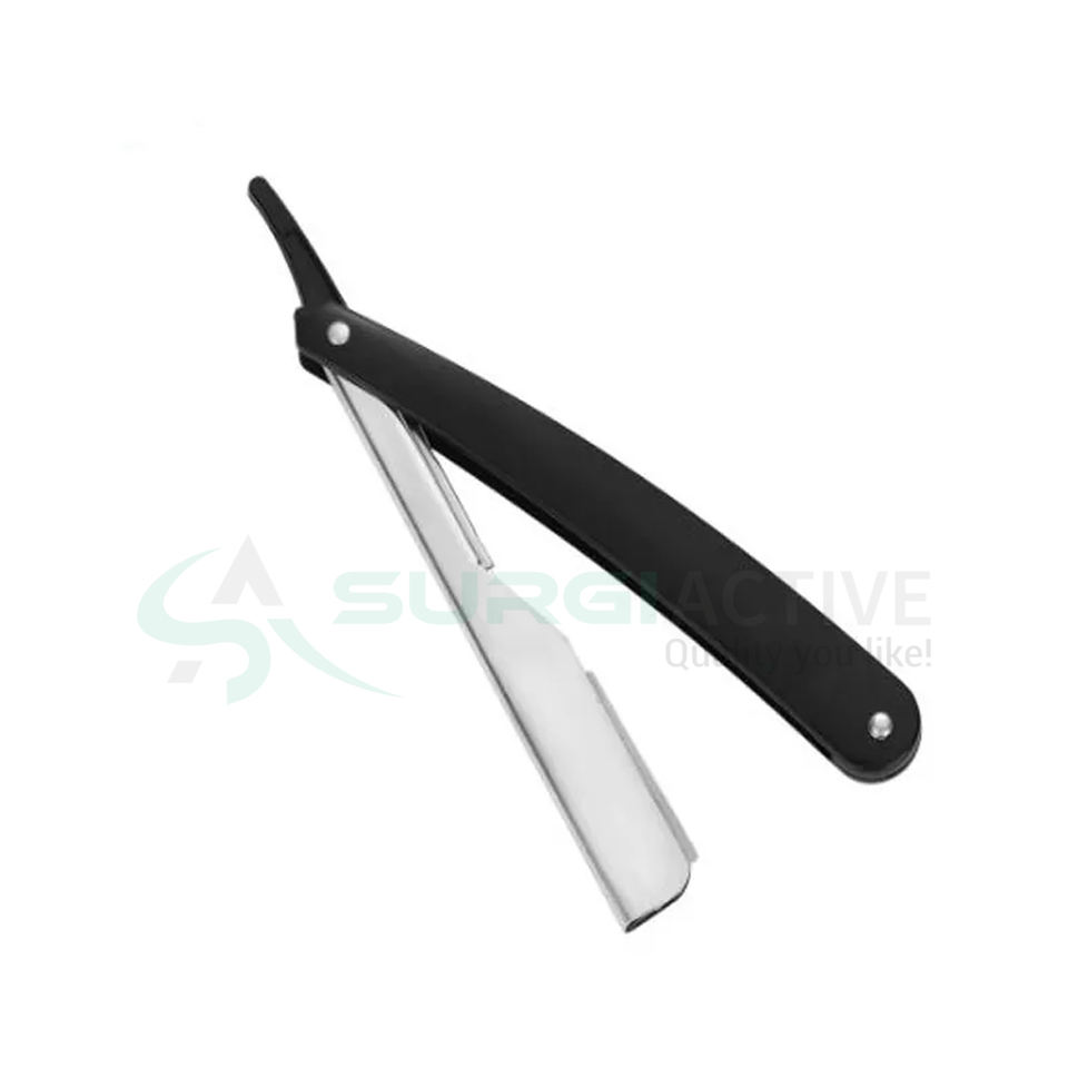 Maquinilla de afeitar recta de peluquero de acero inoxidable sólido con logotipo personalizado con revestimiento negro con hoja expuesta