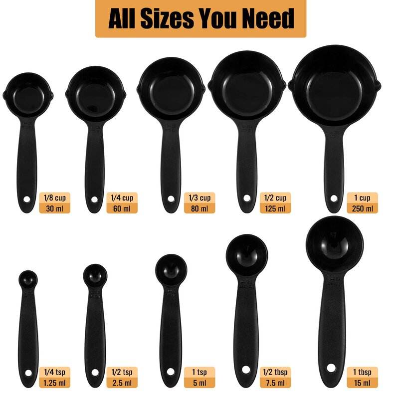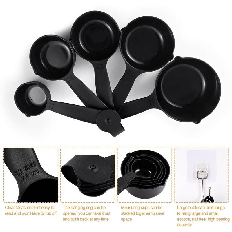 Tazas medidoras de acero inoxidable con revestimiento negro perfectas para cocinar de Grado Superior duradero y herramienta de cocina Juego de calidad superior de 8 piezas