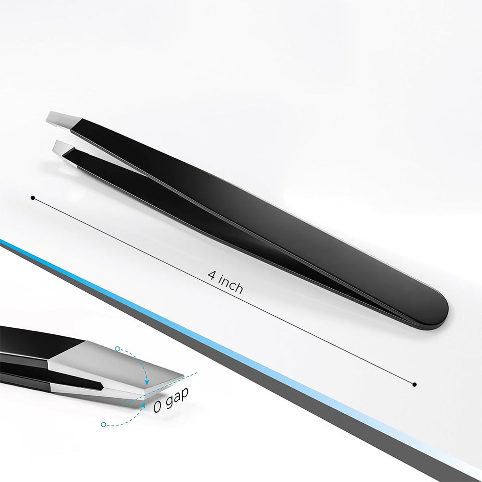 Pinzas para Cejas de Acero Inoxidable con Punta Inclinada y Recubrimiento de Color Negro de 4 Pulgadas, para Eliminar el Vello de la Frente, Pinzas para Cejas para Belleza