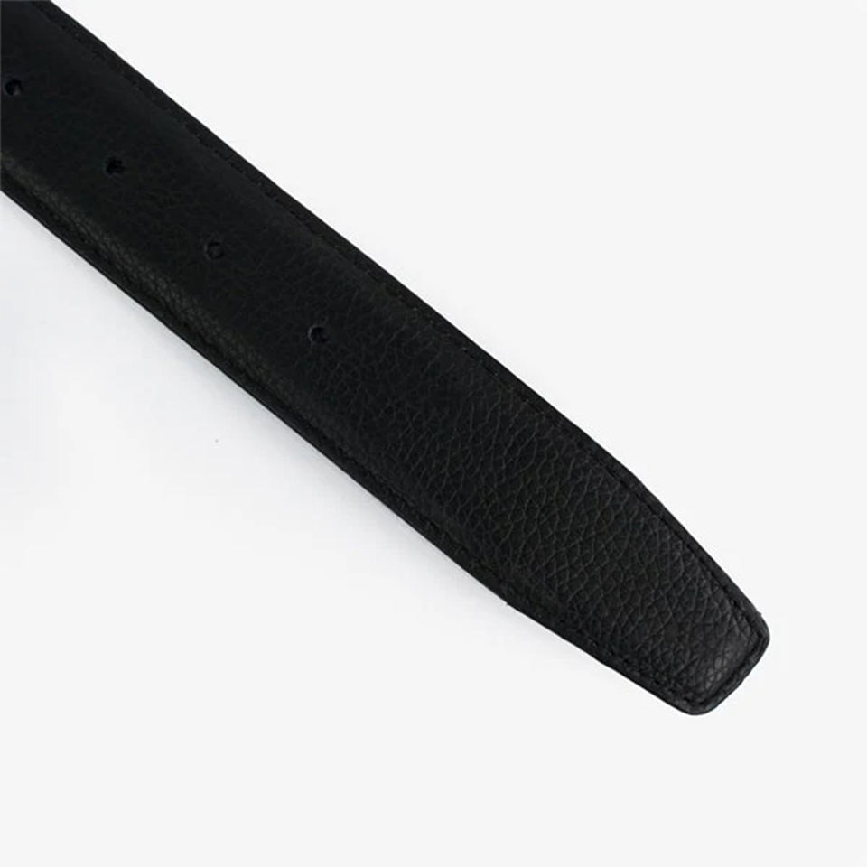 Cinturón de Cuero Vacuno Genuino de Color Negro para Unisex, Hebilla de Pin, Uso de un Solo Lado, Estilo Ejecutivo
