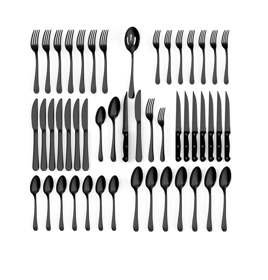 Juego de cubiertos de diseño Chapado en color negro para ajustes de mesa contemporáneos juego de cucharas de acero espejado a un precio muy asequible