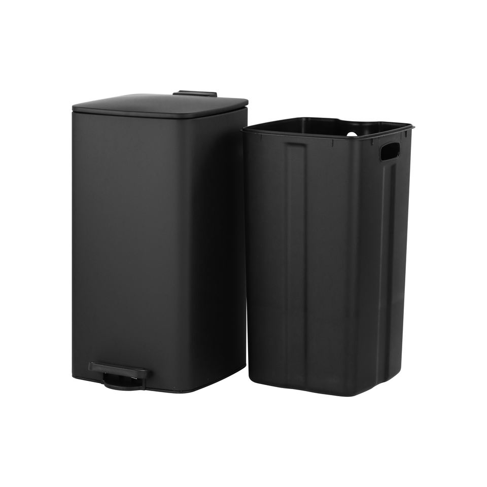 Cubo de Basura con Pedal, Color Negro, Recubrimiento en Polvo, 30L, Cuadrado, Cierre Suave, para Cocina, Hogar, Tamaño Grande, 30 Litros
