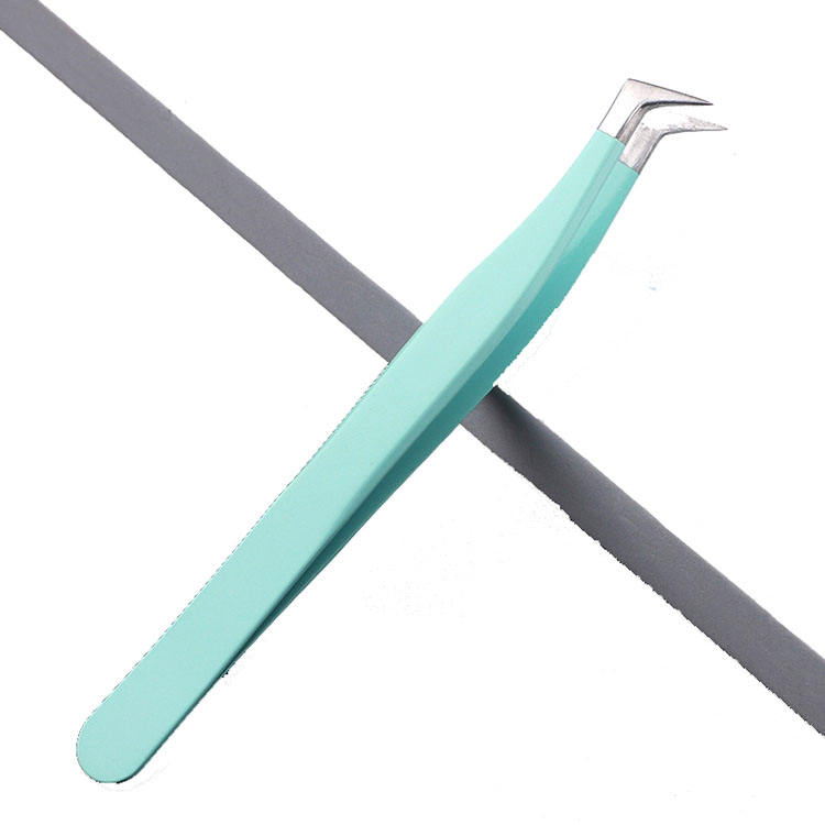 Pinzas profesionales de fibra en forma de L QNQ, extensión de pestañas negras, volumen de pestañas, herramienta de belleza puntiaguda, grado de etiqueta privada