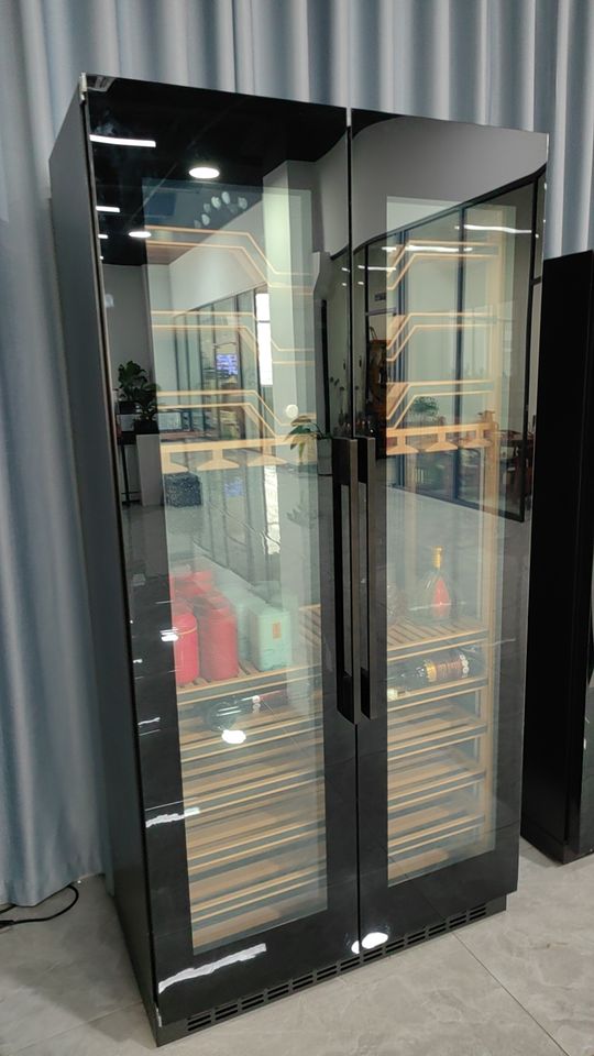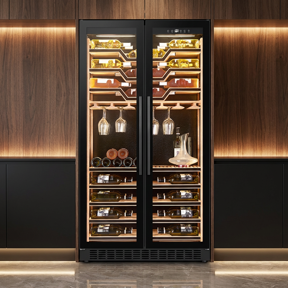Refrigerador para Vinos de Color Negro con Dos Puertas de Vidrio, Enfriador Digital para Vino Tinto y Blanco, Vinoteca para el Hogar