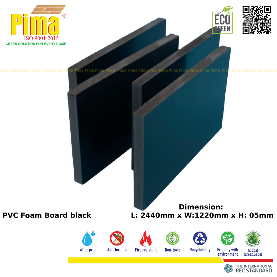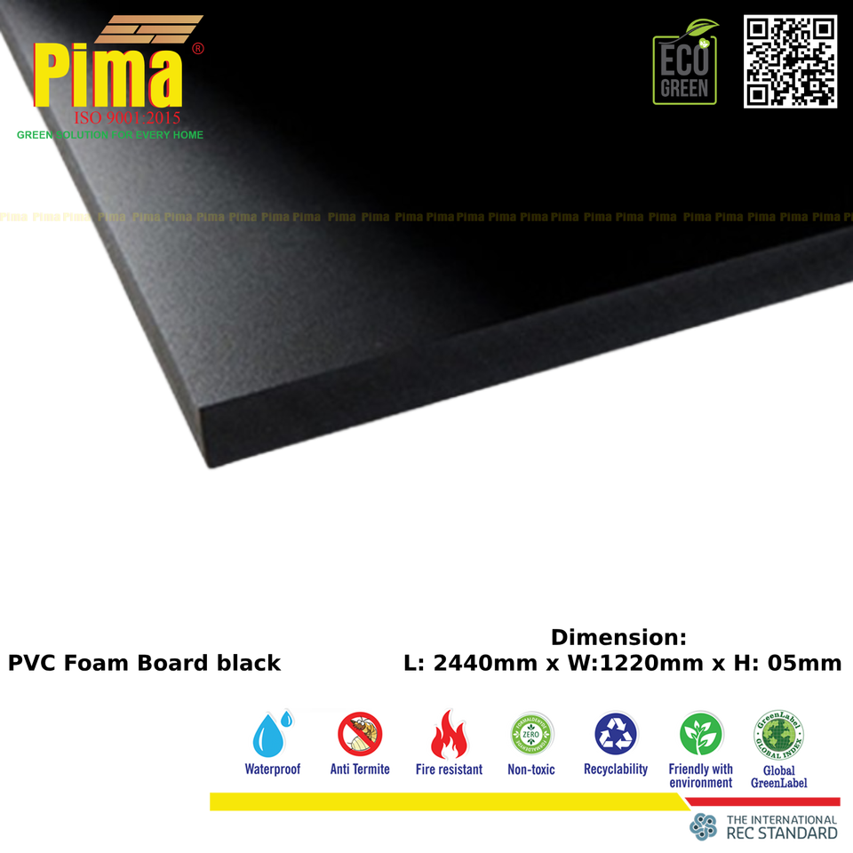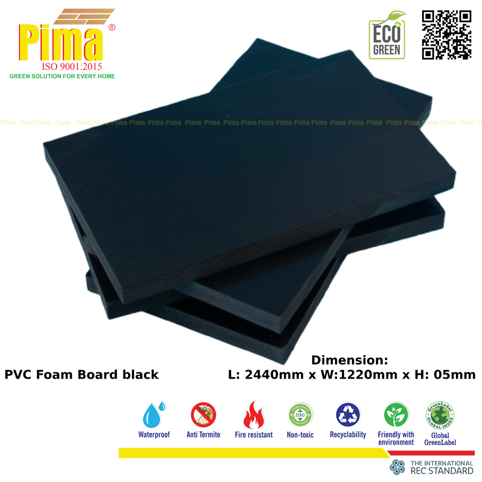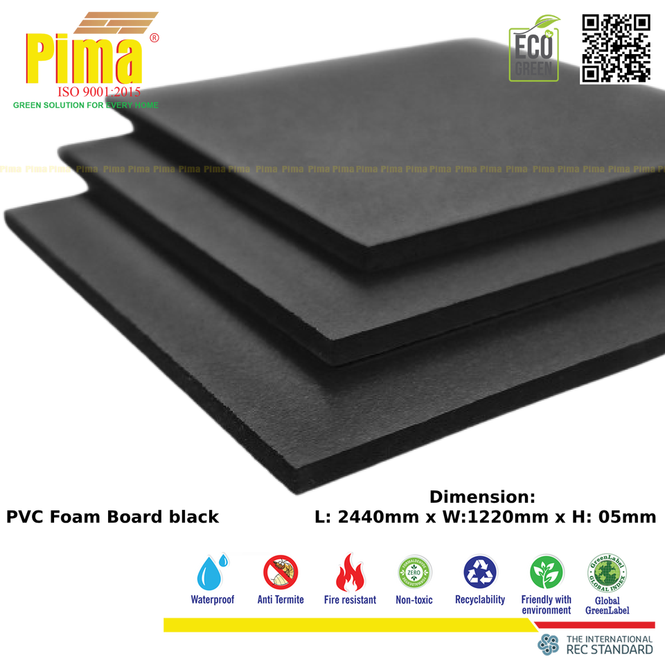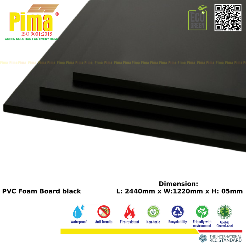 Lámina de Espuma de PVC WPC de Color Negro, 3 mm de Espesor, 0.6 G/cm3 de Densidad, Superficie Lisa, Paneles de Polivinilo Expandido para Muebles