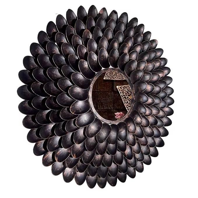 Color negro increíble patrón redondeado fabuloso espejo de Metal de lujo decoración de pared de boda moderna enmarcada nueva llegada colgante Art Deco