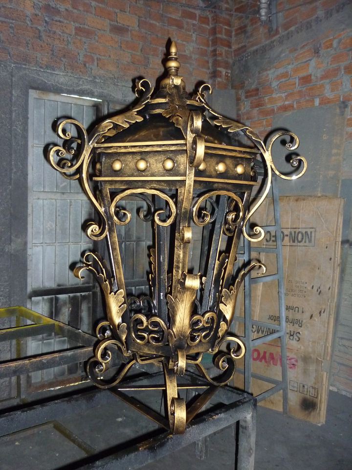 Lámpara de Puerta de Hierro Color Cobre Negro, Estilo de Luces de Policarbonato de 5mm, Aplicación para Columna de Puerta 300x300x800mm, de Vietnam