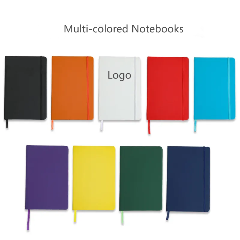 Cuaderno de diario forrado con estampado personalizado negro A5 Cuadernos de cuero PU de tapa dura para estudiantes