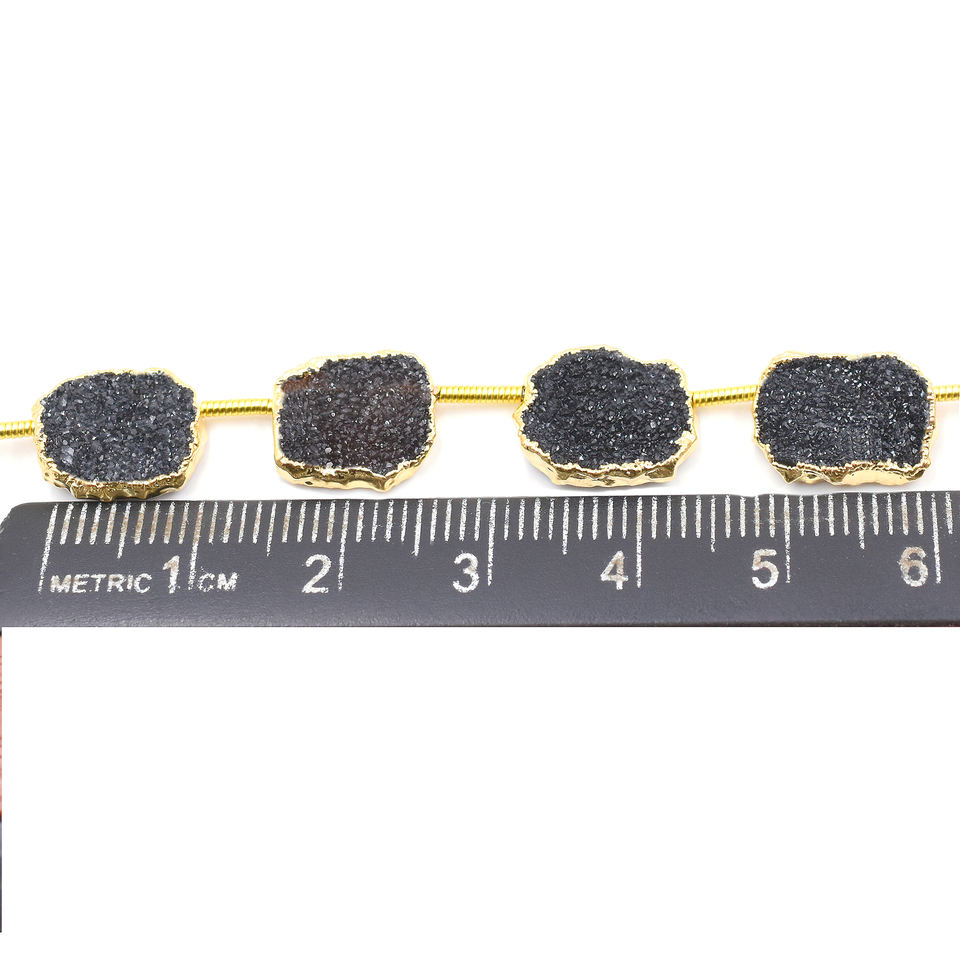 Nombre del Producto:Hilo de 10 cuentas con perforación lateral de drusa negra y baño de oro.