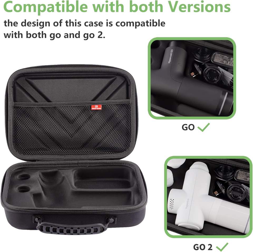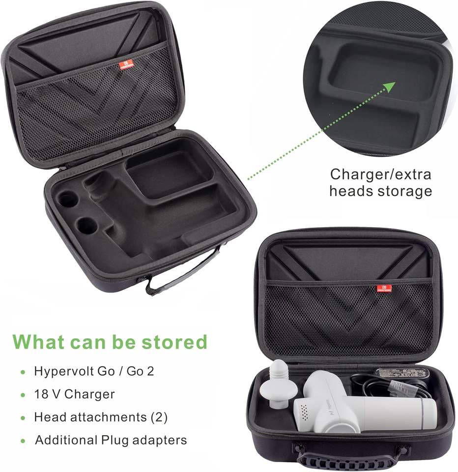 Estuche Rígido de Transporte de EVA Negro para Go 2 y Hyperice para Pistola de Masaje GO - Almacenamiento de Viaje