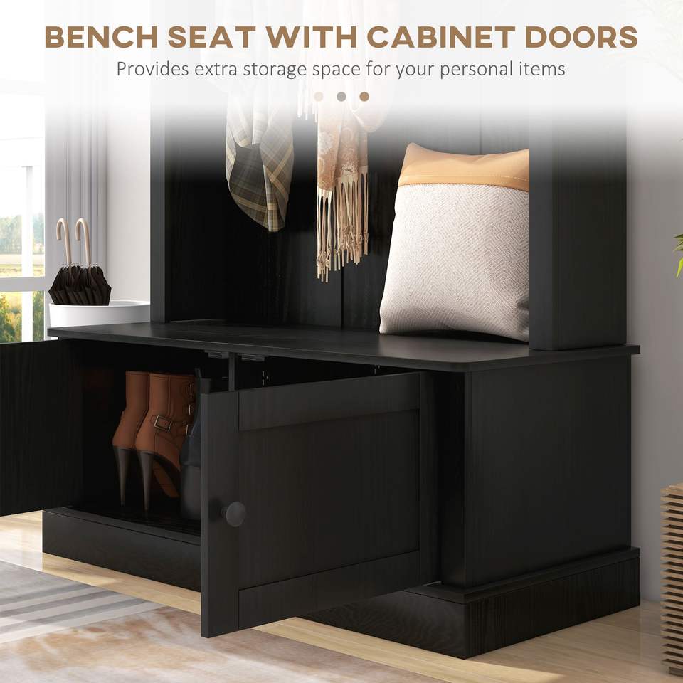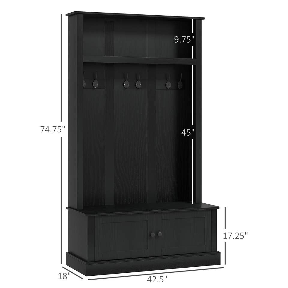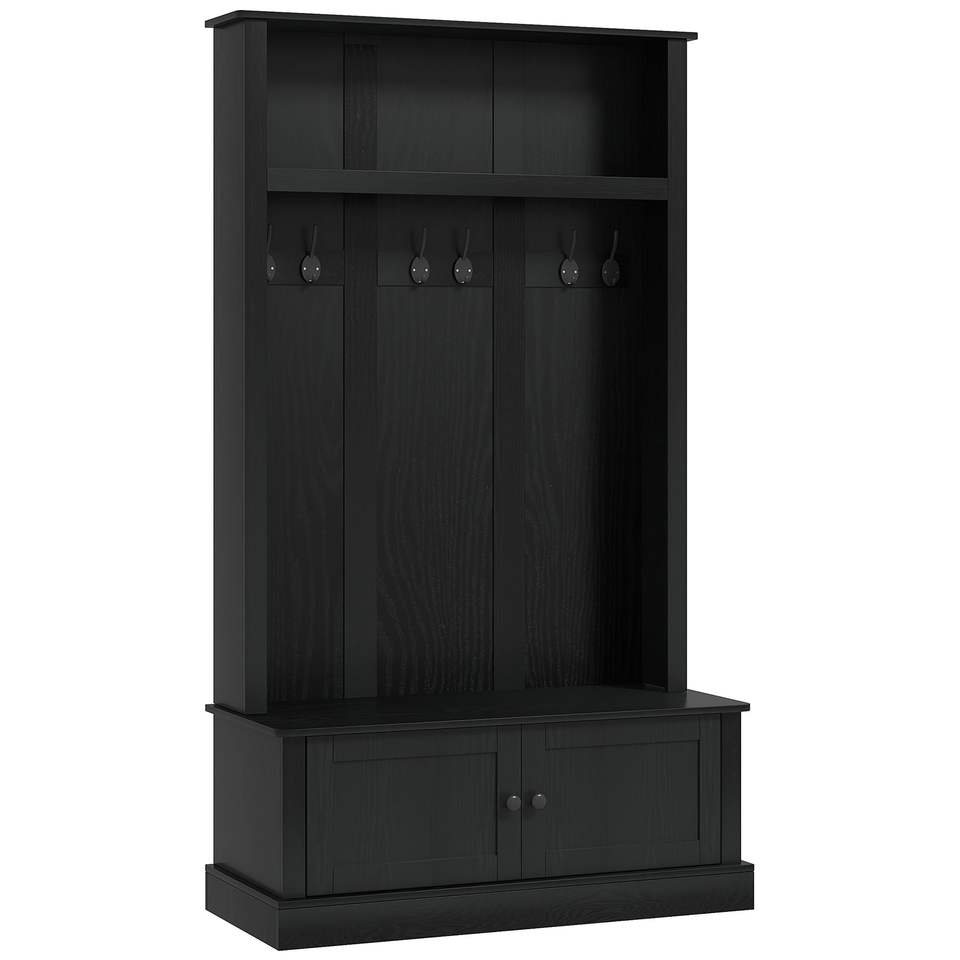 Banco de entrada negro con perchero, ganchos de pared y colgadores para abrigos