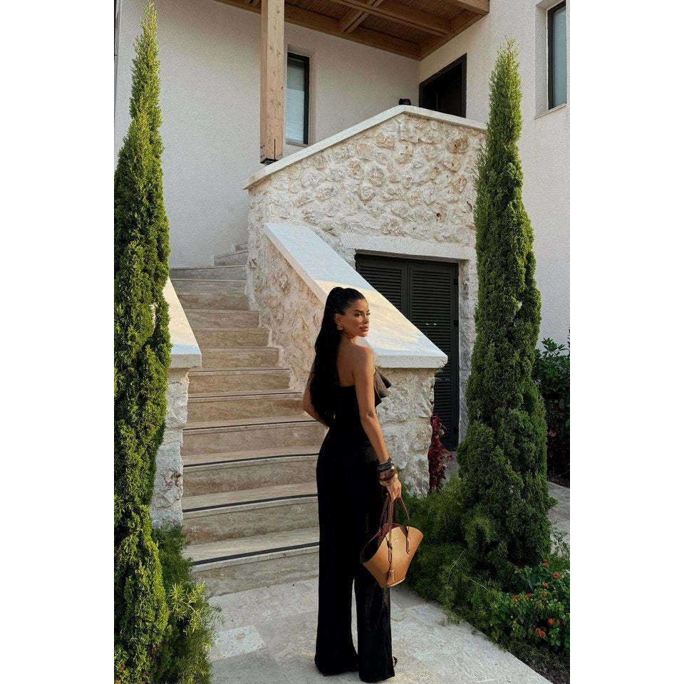 Mono Negro Estilo Fedora, Talla Grande, Elegante y Formal para Fiesta, Mono Ajustado de Punto con Estampado para Otoño