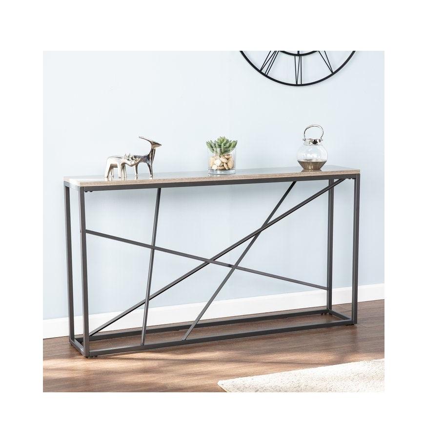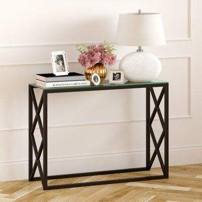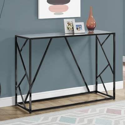Mesa de consola de metal con acabado negro con tapa de cristal perfecta para una lujosa decoración interior y un estilo moderno elegante
