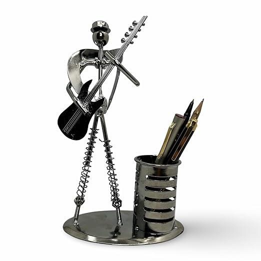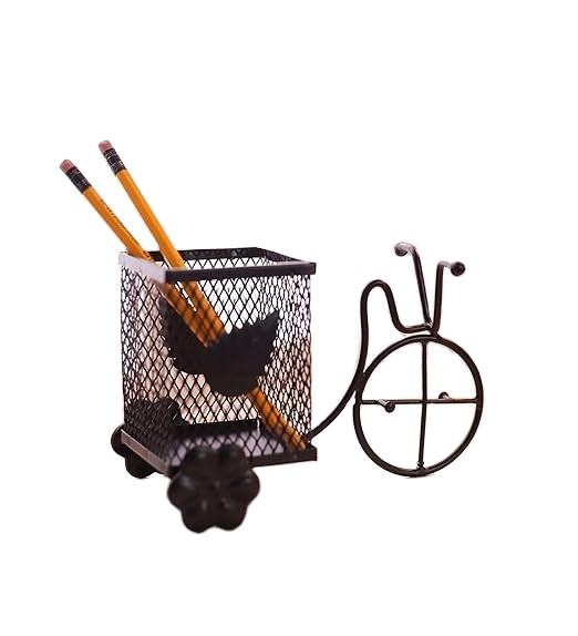 Portaplumas Metálico con Forma de Rickshaw, Acabado Negro, Hecho a Mano, Decorativo, de Acero Inoxidable, para Hogar, Oficina, Escuela