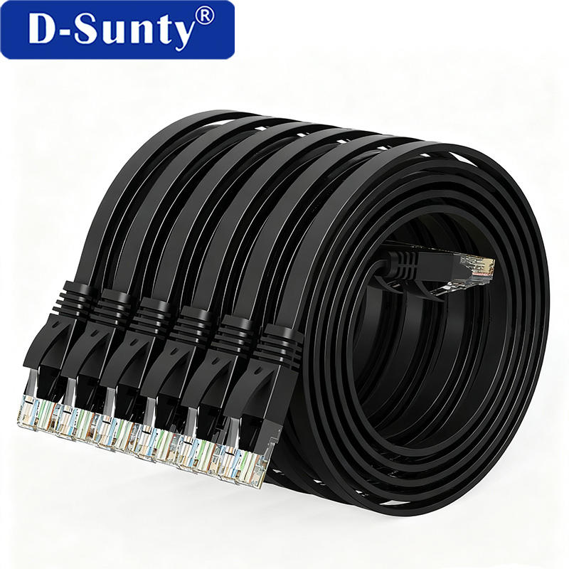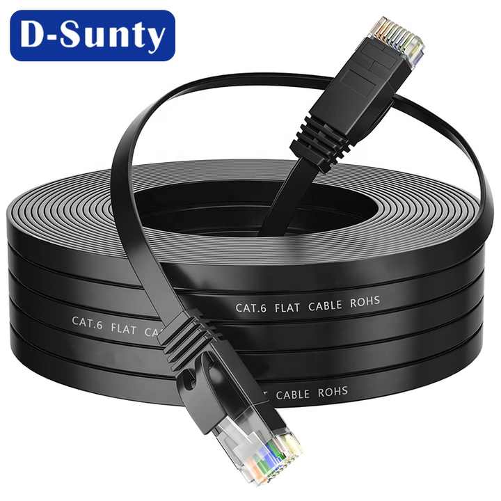 Cable de Conexión RJ45 UTP Cat6 Plano Negro de 5m con Conductores de Cobre Puro para Conexión de Red en Hogar y Oficina