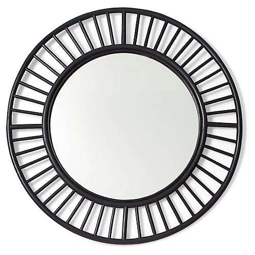 Espejo de mimbre con flores negras para decoración del hogar, decoración de pared clásica, redondo