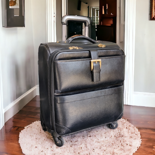 Product name:Black Genuine Leather Luggage Trolley Bag in Adjustable Handle