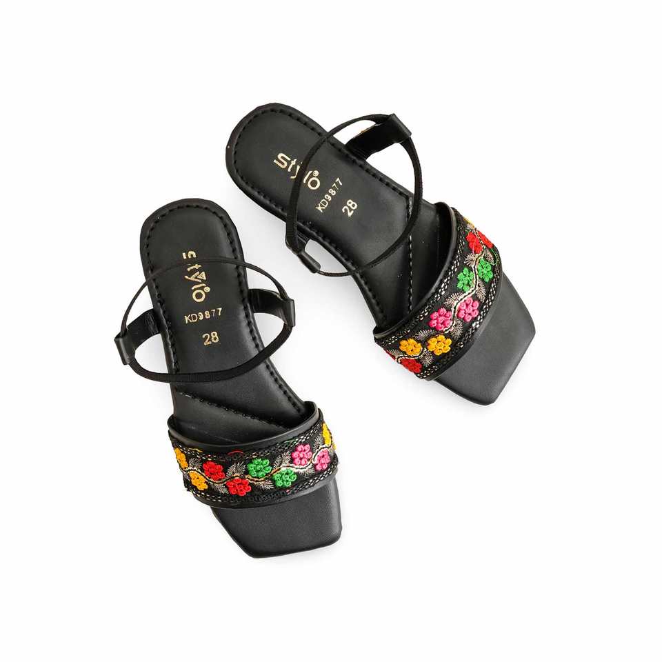 Sandalia Casual Tacón Niña Negra Modelo KD9877