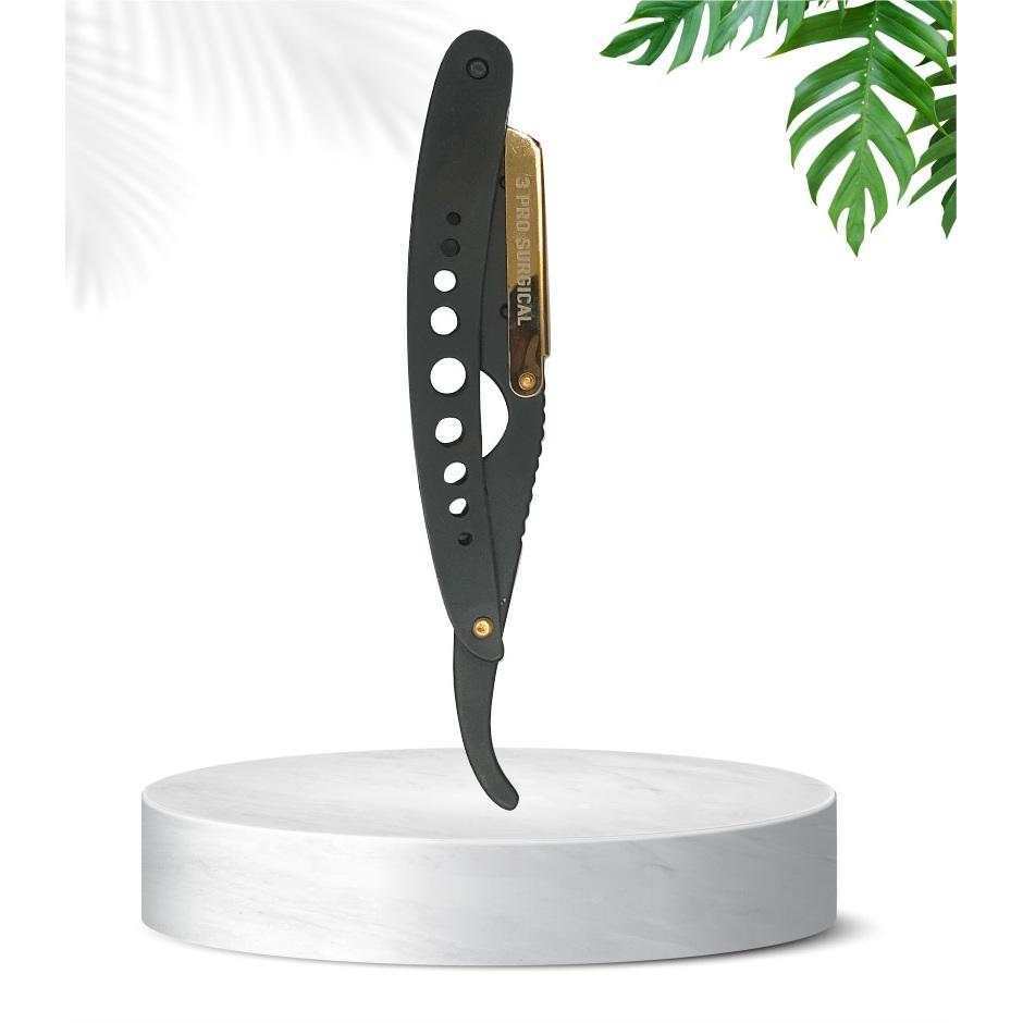 Juego de Tijeras y Navaja de Barbero Negras y Doradas para Cortar y Entresacar el Cabello y la Barba en Salones 3PS 656 (6)