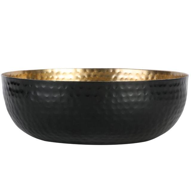 Cuenco decorativo de Metal martillado De Oro Negro, plato redondo para servir, decoración del hogar, pieza central, acento dorado, Interior negro