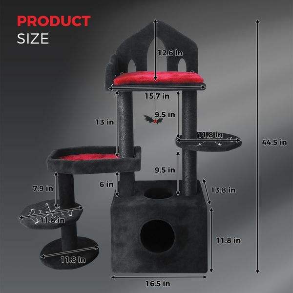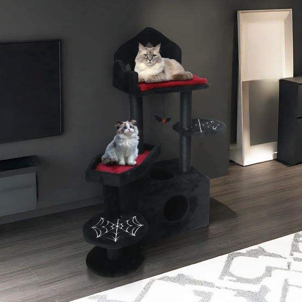Árbol para Gatos Gótico Negro de Múltiples Niveles, con Postes para Rascar, Perchas, Hamaca y Cueva
