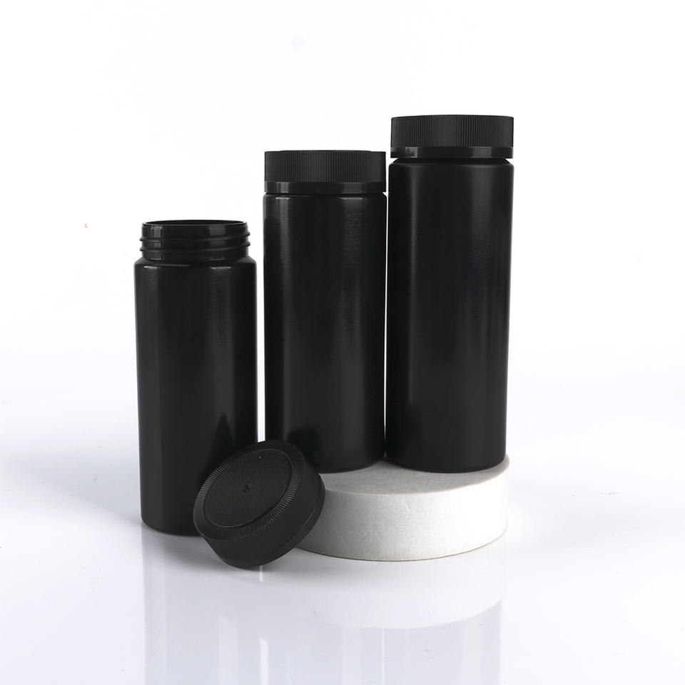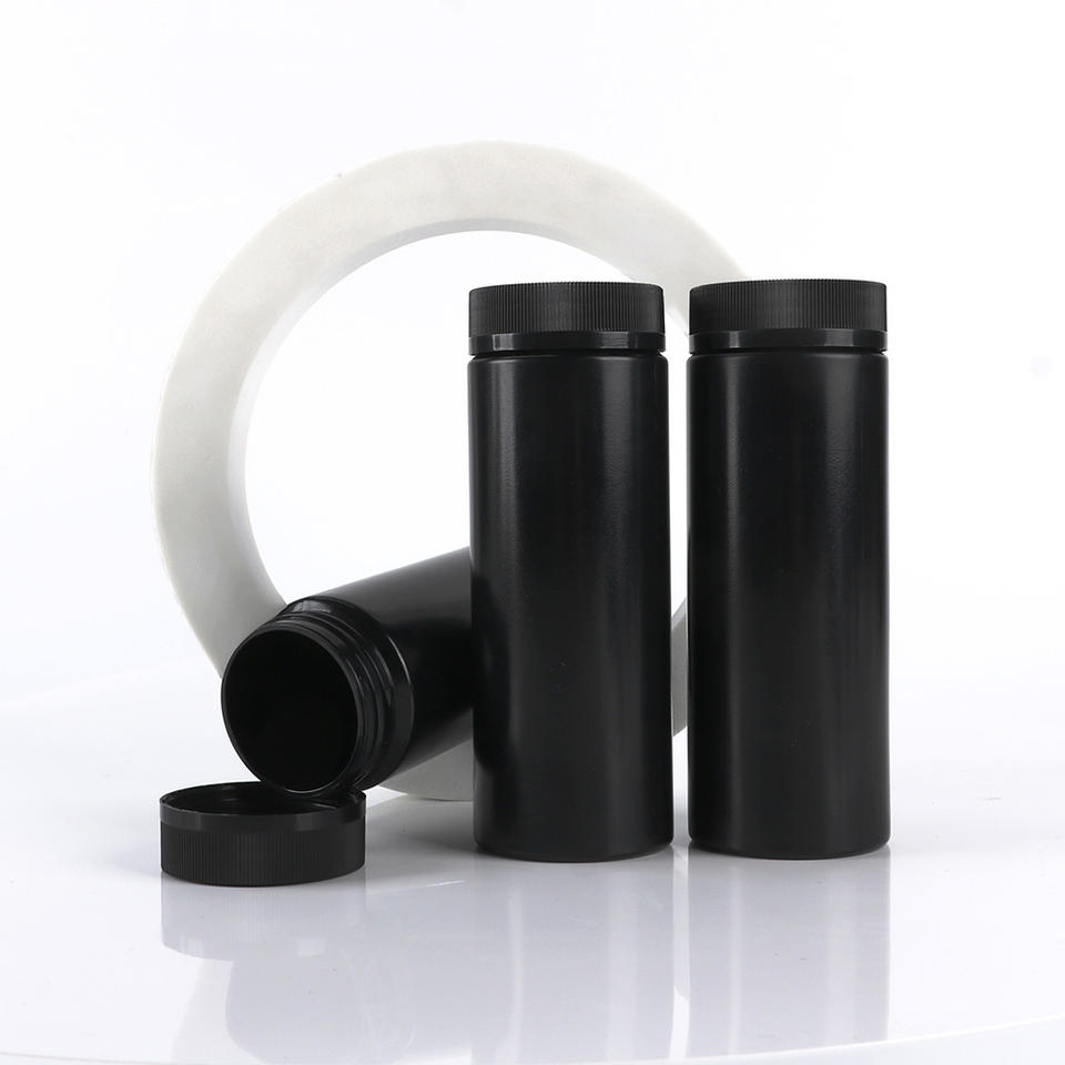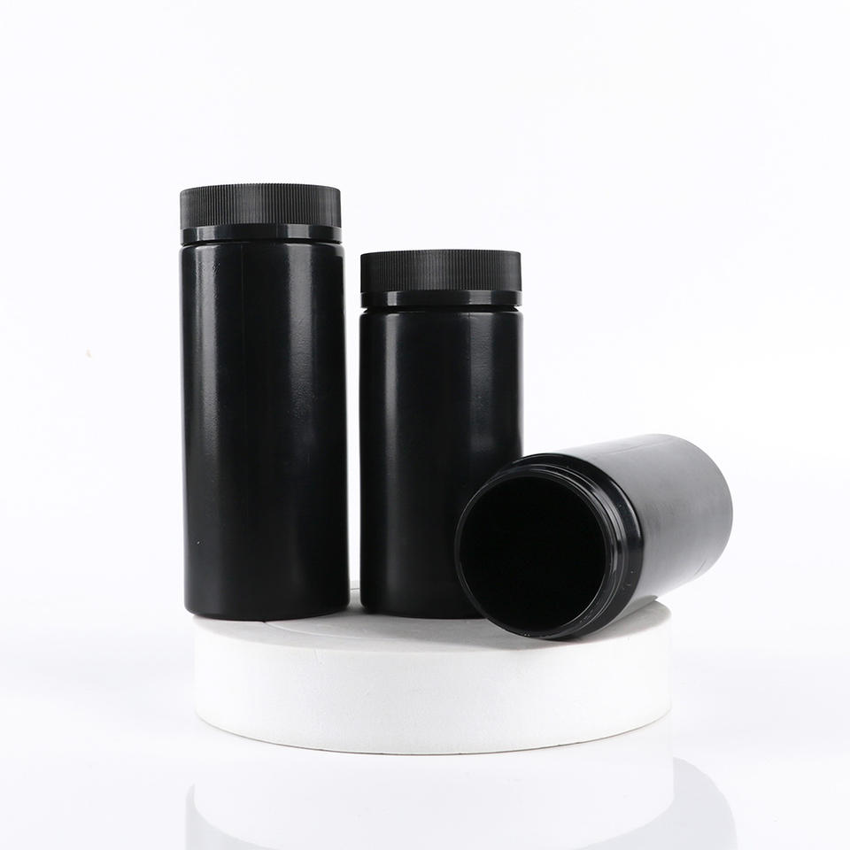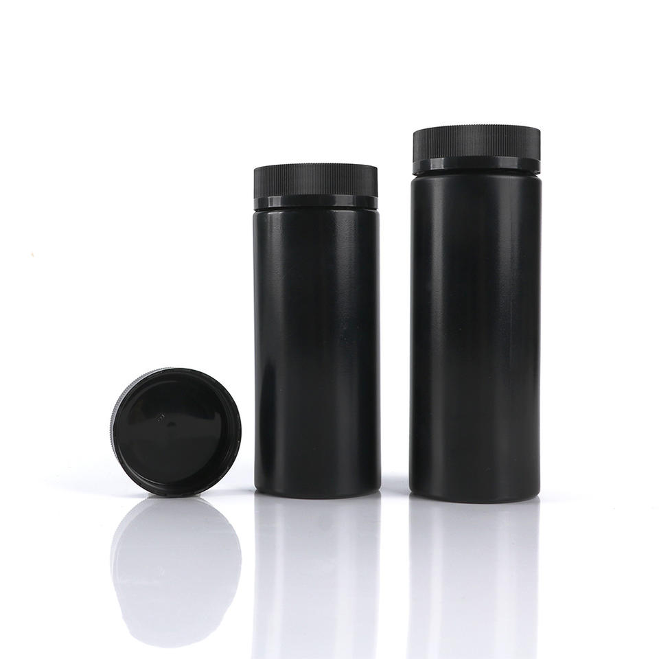 Botella de Plástico HDPE Negra para Pastillas de 100 ml, 150 ml, 200 ml con Tapa Abatible Desprendible, Envase para Suplementos Vitamínicos, Logotipo Personalizado, Venta al por Mayor