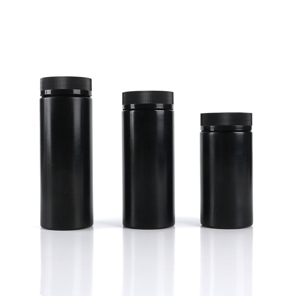 Botella de HDPE Negra para Suplementos, 100ml 150ml 200ml, Envase de Plástico para Pastillas, Frasco de Boca Ancha con Tapa Desprendible, Personalizable