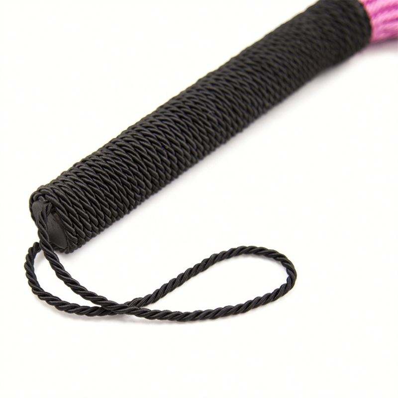 Látigo de Juguete de Asalto Yesi de 50 cm con Mango Negro y Cuerda de Cuero Rosa, para BDSM, Azotes, Juegos de Rol