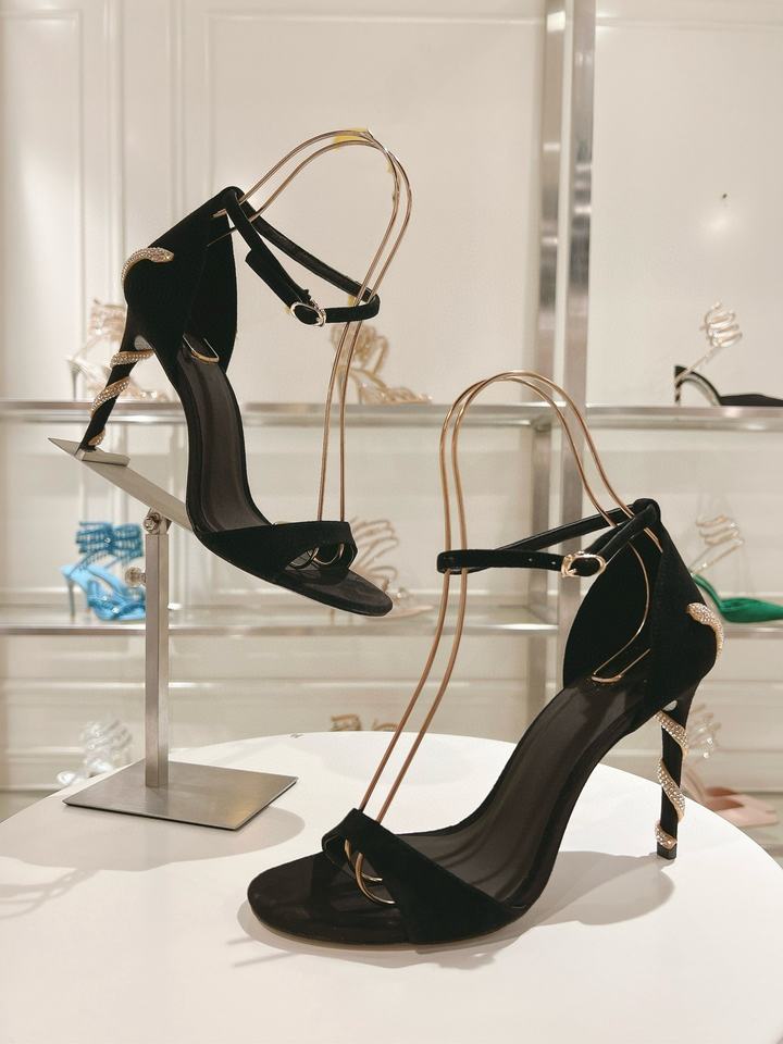 Sandalias negras de tacón alto Sandalias de serpiente desviadas de color sólido para mujeres y damas con tacones