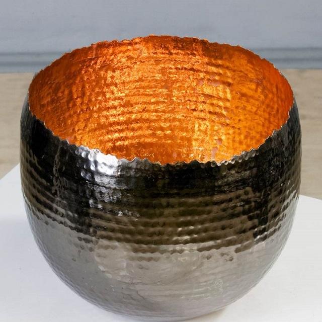 Cuenco para velas de té negro y cobre interior, material de cobre, cuencos de iluminación únicos y elegantes