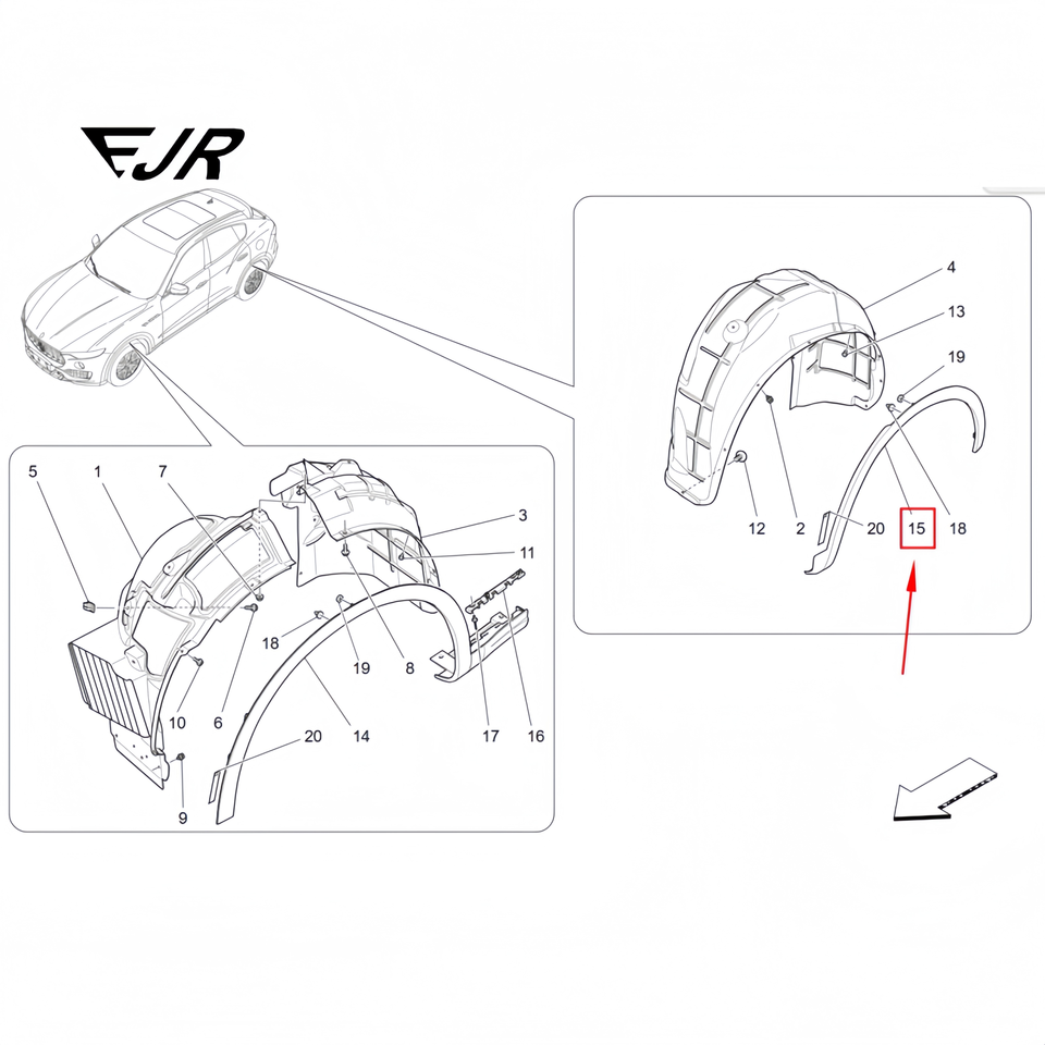 Arco de Rueda Trasero Izquierdo Negro para Maserati Levante M161 OEM 670061855 670168165