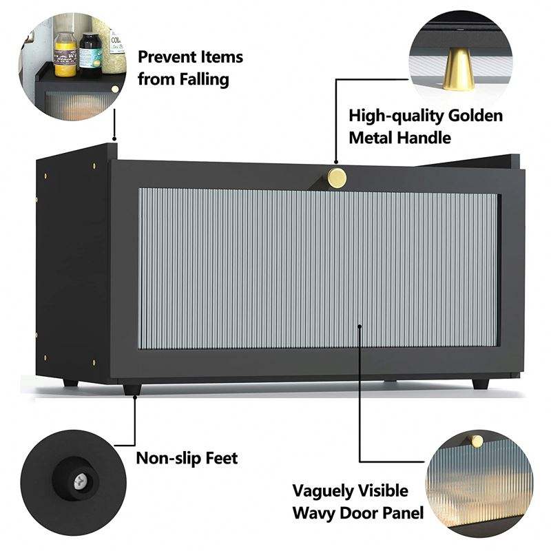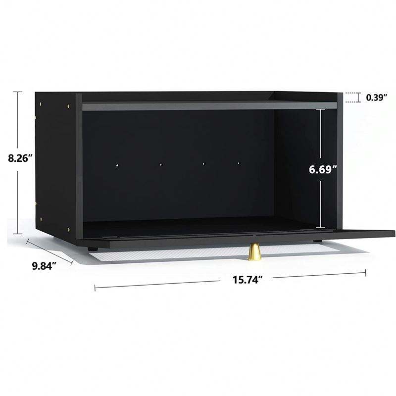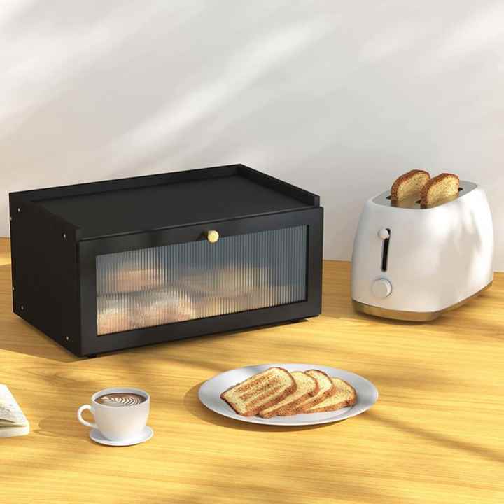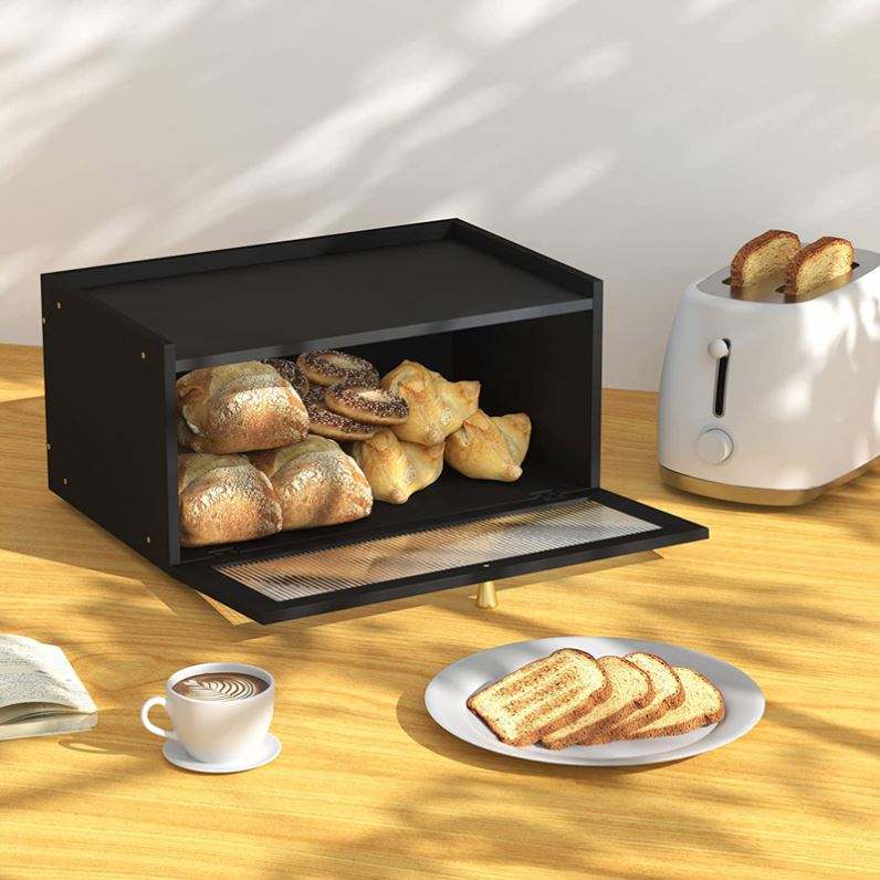 Contenedor de Almacenamiento de Pan Moderno Grande Negro, Caja de Pan de Bambú con Ventana