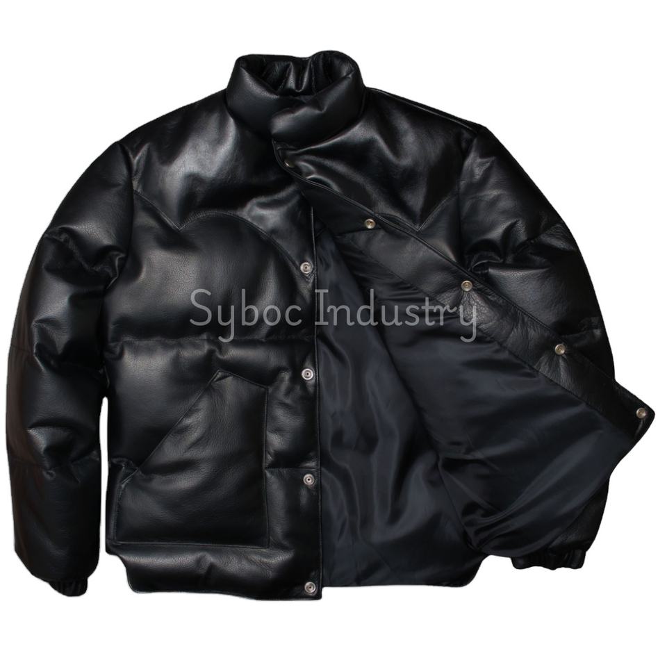 Chaqueta acolchada de cuero negro para hombre de grano superior genuino Napa cuero ecológico nuevo estilo acolchado Parka chaqueta acolchada de cuero