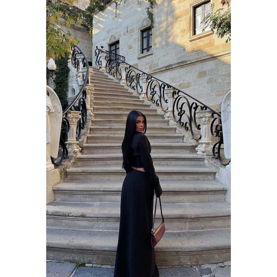 Conjunto de salón de tres piezas de satén negro con bralette halter