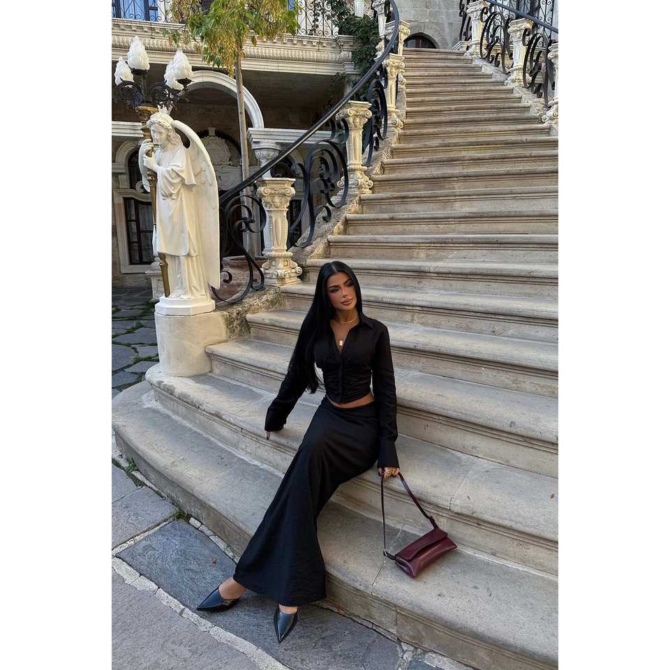 Conjunto de Dos Piezas para Mujer Liana Negro, Blusa Moderna y Pantalones, Conjunto de Shorts de 2 Piezas